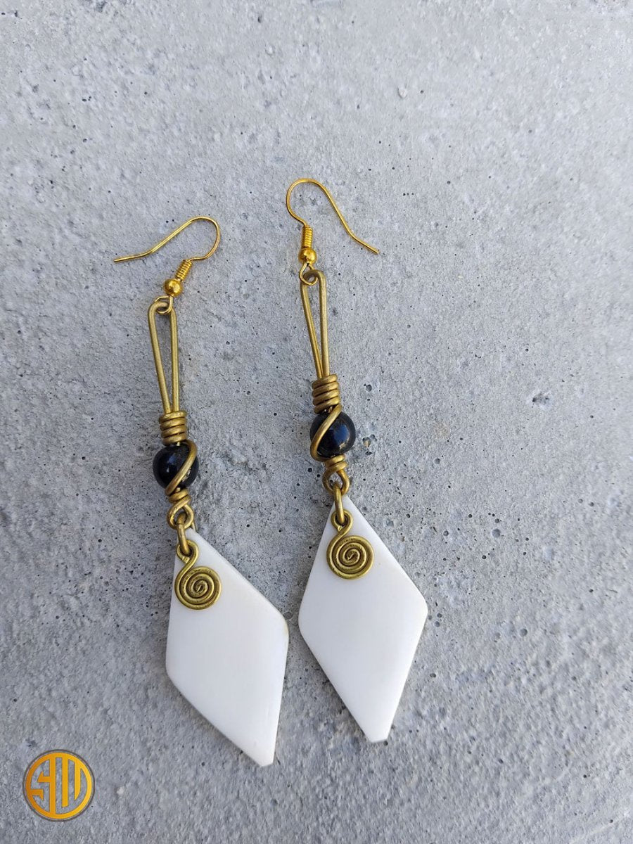 Boucles d’Oreilles Pendantes en Corne et Laiton du Kenya