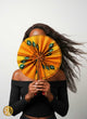 Éventail africain en wax orange et cuir – Fait main au Kenya