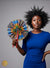 Éventail africain multicolore en wax et cuir – Fait main au Kenya