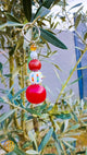 de perles décoratives en verre, dont une perle bleue centrale lumineuse,