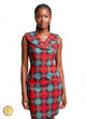 Cette robe africaine évasée séduit par son imprimé wax multicolore aux teintes vibrantes de rouge, jaune, noir et bleu. Sa coupe ample et fluide assure un confort optimal, tout en offrant une allure élégante et moderne.