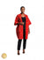 Ce kimono africain en tissu rouge imprimé de motifs traditionnels apporte une touche unique et élégante à vos tenues. Sa coupe ample et ses grandes poches le rendent à la fois confortable et pratique, idéal pour superposer sur un look casual ou habillé.