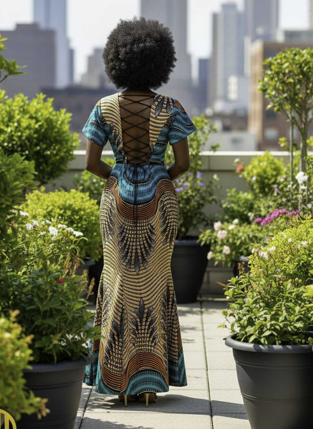 Robe longue sirène en wax – Laçage au dos