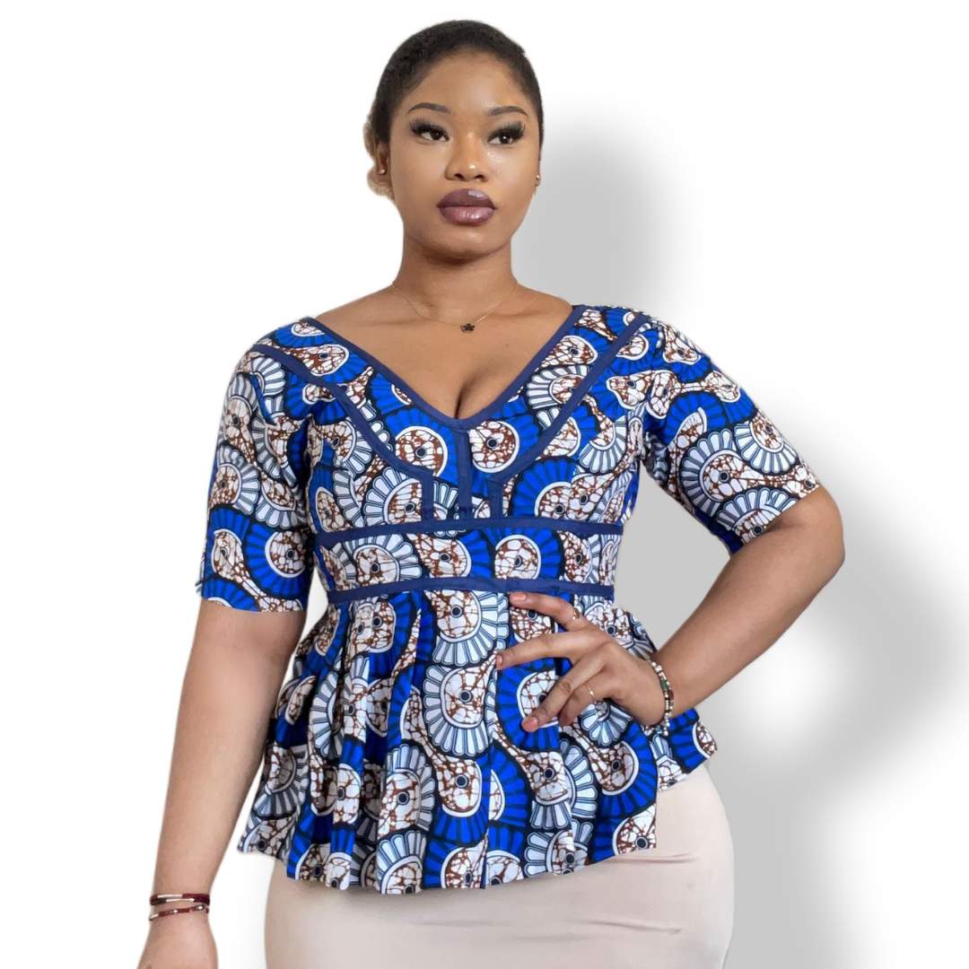 Découvrez notre haut en wax avec basque, parfait pour un look africain moderne et élégant. Fabriqué à partir de tissu de haute qualité, ce haut met en valeur les motifs et couleurs vibrantes du wax. Avec sa basque flatteuse, il est idéal pour toutes les occasions, des événements formels aux tenues décontractées.